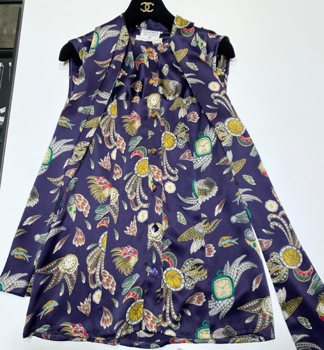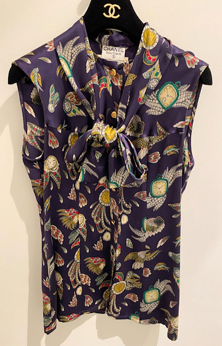 CHANEL シルク100% リボンタイ ノースリーブブラウス