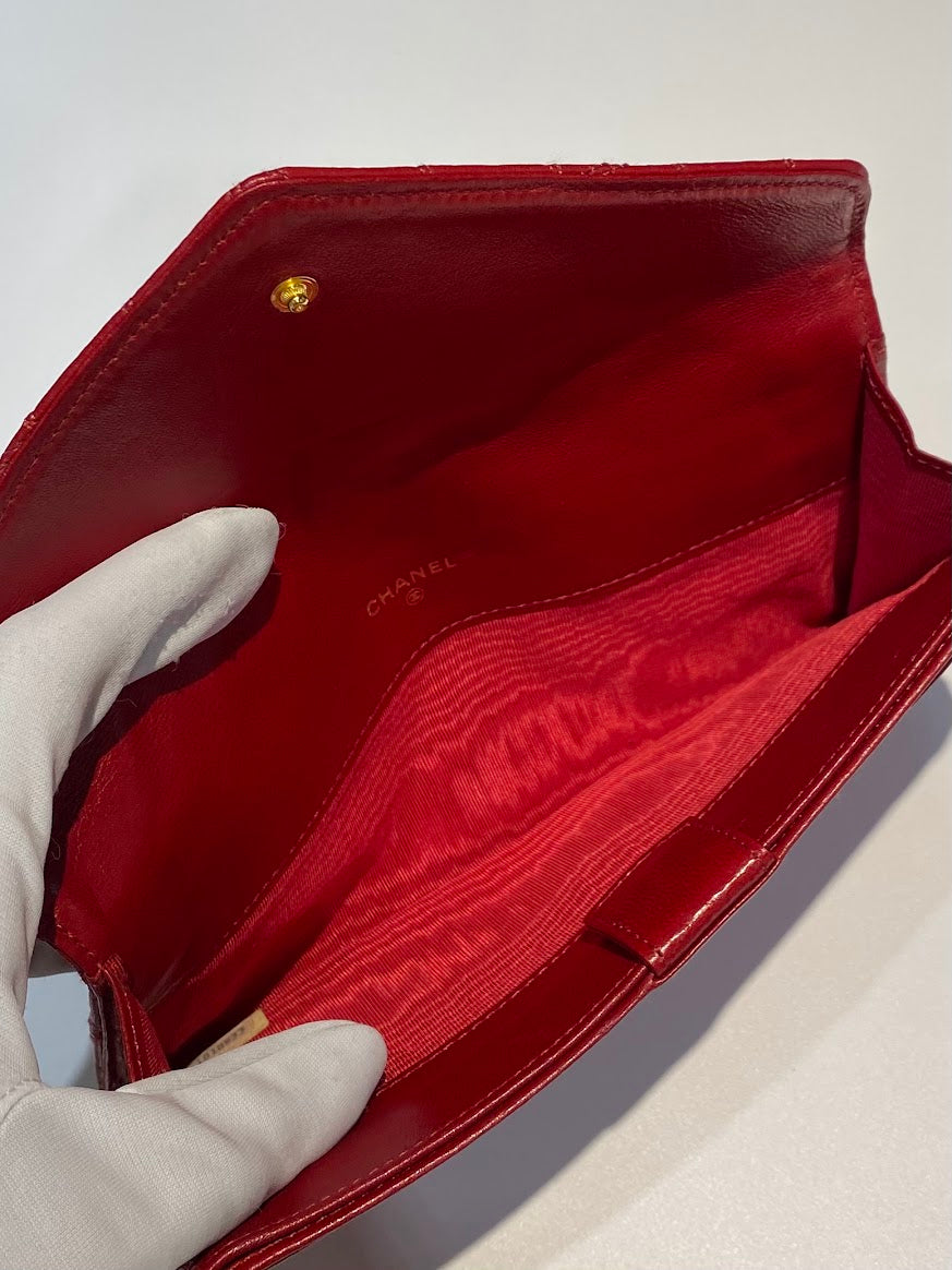 CHANEL レザー 長財布 レッド