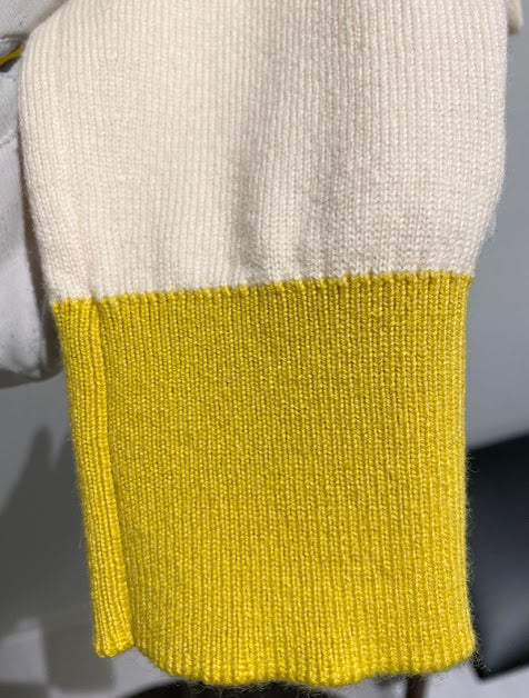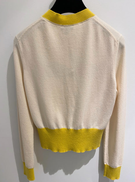 CHANEL ロゴ カシミア カーディガン 白×黄