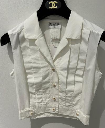 CHANEL シルク100% リボンタイ ノースリーブブラウス